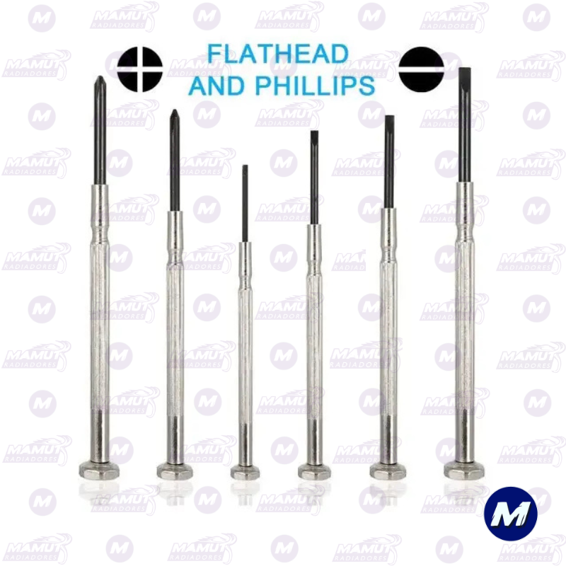 Juego de herramientas de reparación de precisión con 6 cabezales planos de diferentes tamaños y destornilladores Philips, ideal para relojes, joyeros