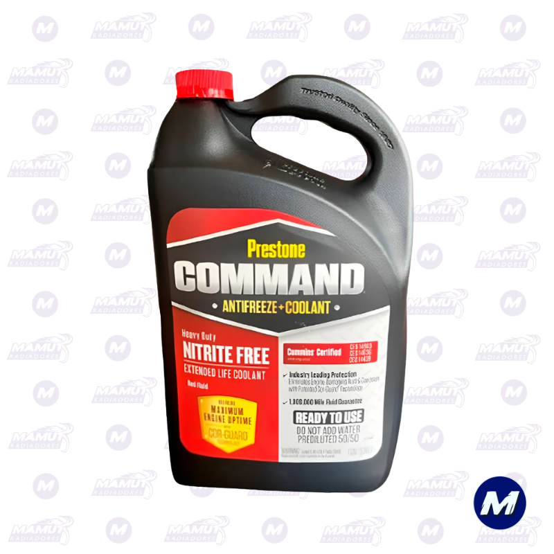 Prestone comprende el valor de su tiempo y la importancia de un mantenimiento sin complicaciones. Por eso, Refrigerante Command Diesel 50/50 Prestone viene premezclado para uso inmediato. Olvídese de las complicaciones de medir o diluir: simplemente viértalo directamente en el sistema de refrigerante de su motor y disfrute de la tranquilidad. Este versátil refrigerante es ideal para diversos vehículos diésel, desde camionetas ligeras hasta maquinaria pesada, lo que lo convierte en una opción confiable tanto para profesionales como para conductores habituales.